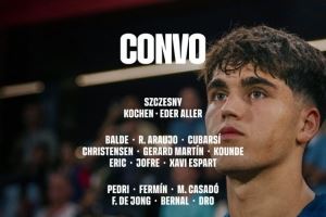 后卫:巴尔德、阿劳霍、库巴西、克里斯滕森、马丁、孔德、埃里克-加西亚、托伦茨、埃斯帕特