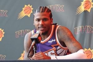 体育资讯9月25日讯 今天,太阳球星杰伦-格林参加了新闻发布会。