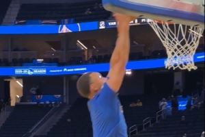 常规操作!库里赛前训练 接助教传球贡献勉扣