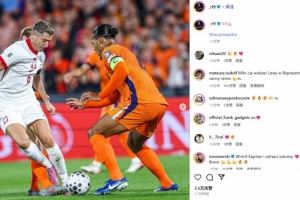 莱万晒出自己在比赛中和荷兰队长范迪克的对位照,并配文:“1-1战平”。